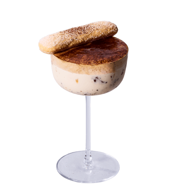 マスカルポーネ・クリーム/コーヒー・エスプーマ/ヴァニラ・アイスクリーム/コーヒー・デーツシロップ/コーヒー・ゼリー/ビスケット